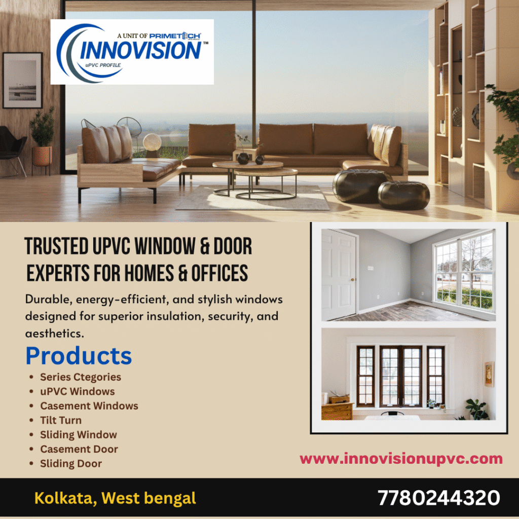 UPVC windows are now the first choice for both homeowners and builders when it comes to enhancing the beauty and durability of contemporary homes. UPVC windows are gaining popularity across India due to their durability, insulation, and low upkeep. Among all cities, Kolkata has seen the greatest increase in demand for these windows. Choosing the Best UPVC window manufacturer Kolkata is essential for quality and long-term performance. Why Choose UPVC Windows from the Best UPVC Window Manufacturer in Kolkata Windows made of UPVC are a smart choice for both residential and commercial properties. They provide superior insulation, protect against noise, and ensure energy efficiency. The following are some of the main advantages of installing UPVC windows: The fact that there is an increasing demand for Kolkata-based UPVC window manufacturers demonstrates their growing significance in today’s infrastructure. Innovision UPVC – Setting New Standards Innovision UPVC, one of the most reputable brands in the business, has established itself in Kolkata as a trustworthy and cutting-edge brand. They stand out from the competition thanks to their attention to quality, customer satisfaction, and cutting-edge designs. Innovision offers a wide range of options for both residential and commercial projects, including sliding and casement UPVC windows. Due to their dedication to providing not only products but also complete solutions, Innovision UPVC is the choice of many homeowners. Their windows are made with precision to last and look good. Innovision has established itself as Kolkata’s best UPVC window manufacturer by providing windows that are both high-quality and affordable. Key Features of the Best UPVC Window Manufacturer in Kolkata The best Kolkata suppliers of UPVC windows guarantee products that are both functional and attractive. Key features include: Innovision UPVC is a dependable partner for homeowners, architects, and builders because it excels in providing all of these features. Growing Market for UPVC Windows in Kolkata The demand for long-lasting and stylish windows has increased significantly with urbanization. In Kolkata, custom-made UPVC windows are now preferred by builders due to their modern appeal and increased property value. Luxury apartments and commercial spaces, where design and quality matter most, are in high demand. Innovision UPVC continues to lead this market by offering eco-friendly and sustainable products that align with modern living standards. They are a top choice in the city thanks to their experience and dedication to innovation. Conclusion Anyone who wants to create a home that combines beauty, durability, and functionality should consider purchasing UPVC windows. Choosing the best Kolkata UPVC window manufacturer is crucial for long-term value, and there are several options. Many homeowners and builders in Kolkata choose Innovision UPVC as their preferred partner because they offer solutions that are of the highest possible quality, can be tailored to their specific needs, and are affordable.